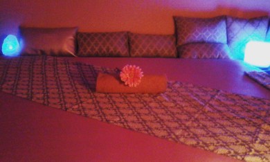 - Disfrutaremos de la comodidad y amplitud del auténtico Futón japonés de algodón, de 200 x 140, en la sala más íntima con luz muy tenue, cromoterapia, musicoterapia, aromaterapia natural vaporizada, velas aromáticas y la sábana de vinilo impermeable resbaladiza y especializada para masaje Nuru cuerpo a cuerpo con líquidos.